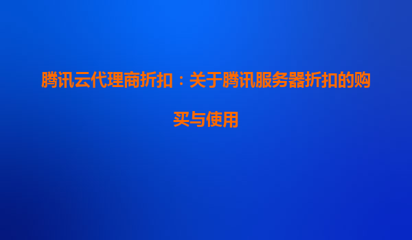 腾讯云代理商折扣:关于腾讯云服务器折扣的购买与使用
