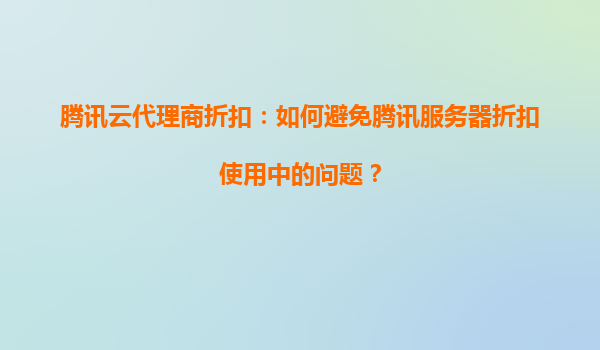 腾讯云代理商折扣:如何避免腾讯云服务器折扣使用中的问题?