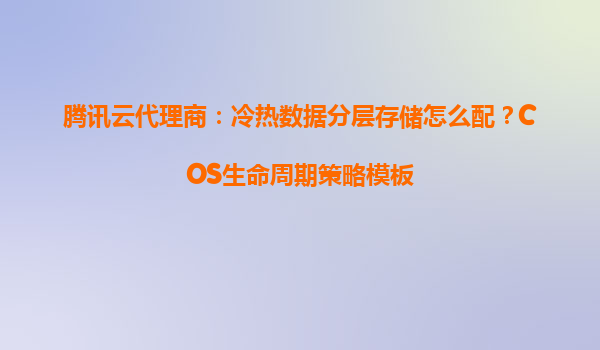 腾讯云代理商指南:冷热数据分层存储配置与COS生命周期策略实践
