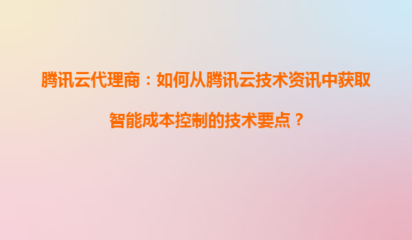 腾讯云代理商:如何从腾讯云技术资讯中获取智能成本控制的技术要点?