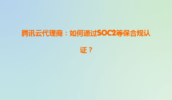 腾讯云代理商如何高效通过SOC2等保合规认证
