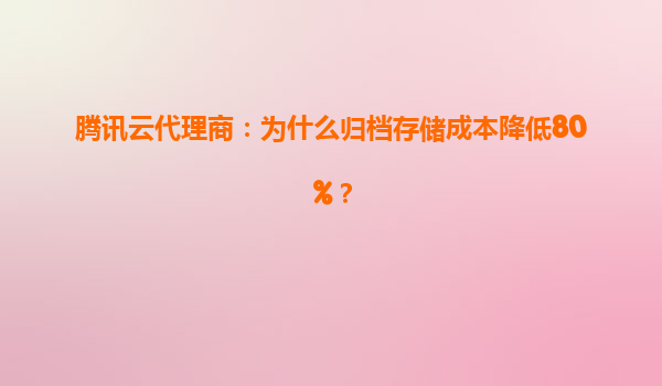 腾讯云代理商揭秘:如何让归档存储成本直降80%?