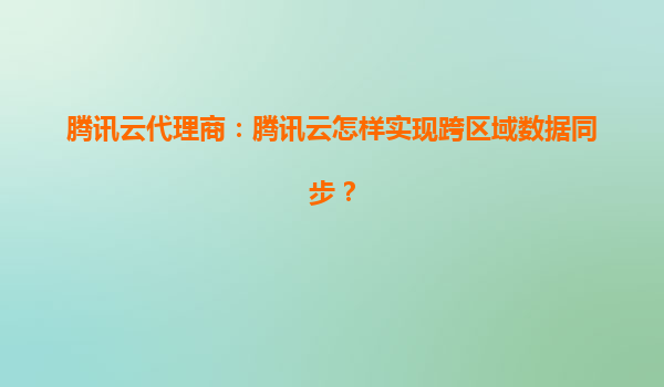 腾讯云代理商解析:腾讯云如何实现跨区域数据同步