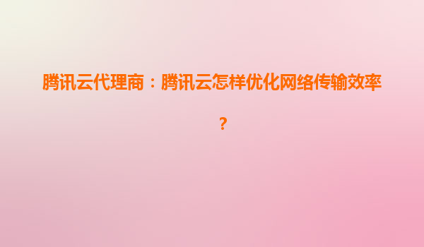 腾讯云代理商视角:腾讯云如何优化网络传输效率的全面解析
