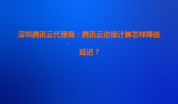 腾讯云边缘计算如何有效降低延迟?深圳代理商深度解析
