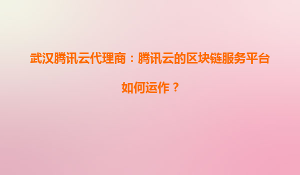 武汉腾讯云代理商:腾讯云的区块链服务平台如何运作?