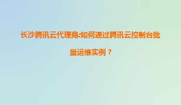 长沙腾讯云代理商:如何高效利用腾讯云控制台批量运维实例