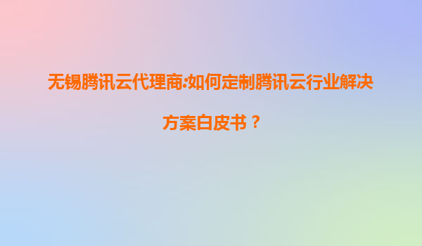 无锡腾讯云代理商:如何定制腾讯云行业解决方案白皮书?