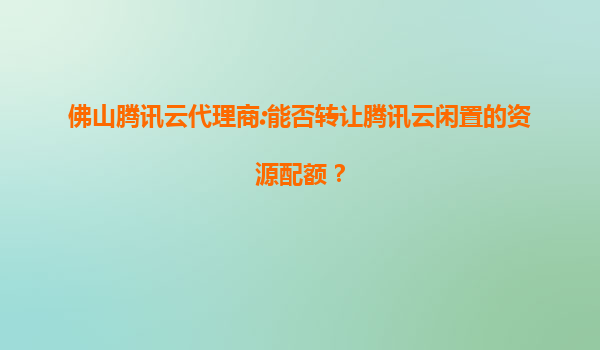 佛山腾讯云代理商解析:腾讯云闲置资源配额转让的可能性与优势
