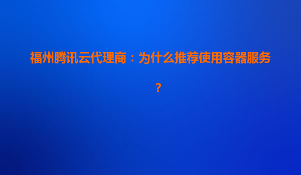 福州腾讯云代理商:为什么推荐使用容器服务?
