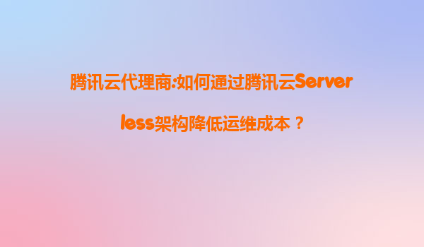腾讯云代理商:如何通过腾讯云Serverless架构降低运维成本?
