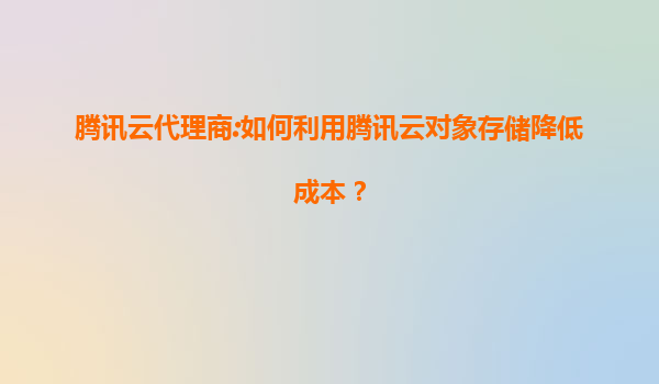 腾讯云代理商:如何利用腾讯云对象存储降低成本?