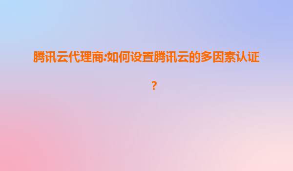 腾讯云代理商指南:如何设置腾讯云的多因素认证?