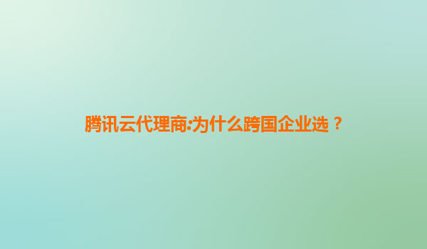 腾讯云代理商作为连接企业与云服务的桥梁,为跨国企业提供以下关键支持:
