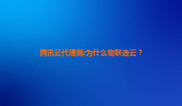 腾讯云代理商:为什么物联选云?