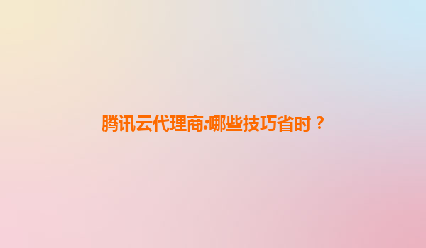 腾讯云代理商省时技巧:高效利用平台优势
