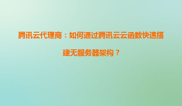 腾讯云代理商:如何通过腾讯云云函数快速搭建无服务器架构?