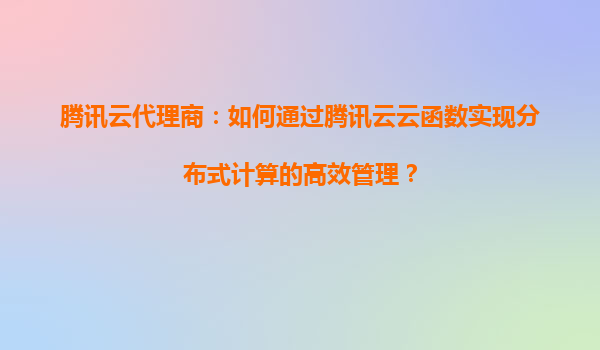 腾讯云代理商:如何通过腾讯云云函数实现分布式计算的高效管理