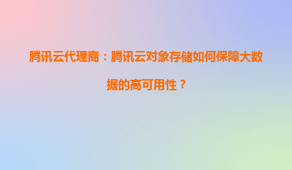 腾讯云代理商:腾讯云对象存储如何保障大数据的高可用性?