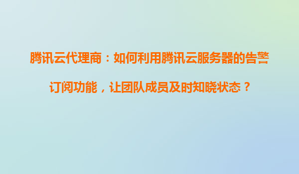 腾讯云代理商指南:高效利用云服务器告警订阅功能提升团队协同