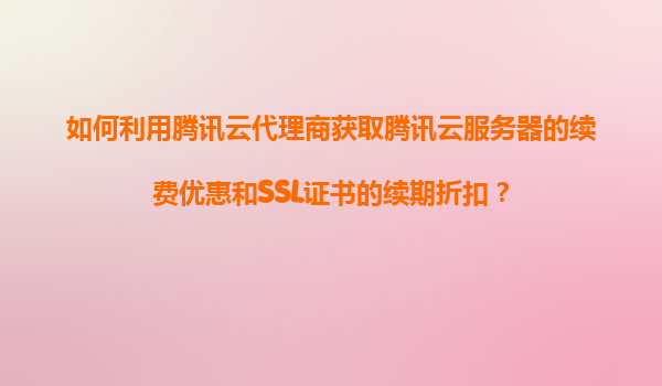 如何利用腾讯云代理商获取腾讯云服务器的续费优惠和SSL证书的续期折扣