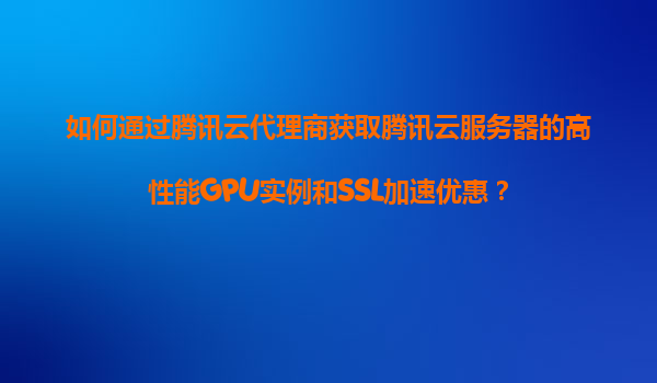 如何通过腾讯云代理商获取腾讯云服务器的高性能GPU实例和SSL加速优惠?