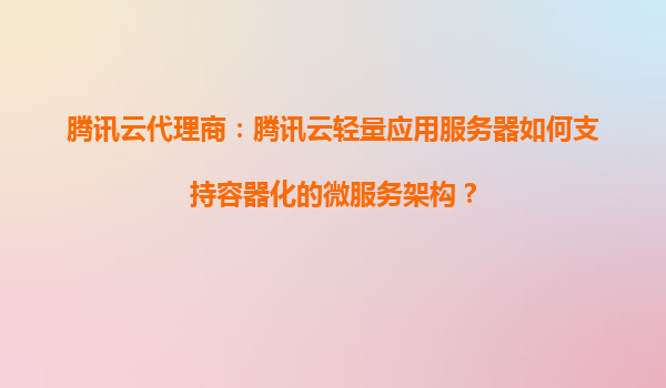 2025-09-06腾讯云代理商:腾讯云轻量应用服务器如何支持容器化的微服务架构? 一、引言 随着云计算和微服务架构的普及,越来越多的企业开始采用容器化技术来构建和部署应...