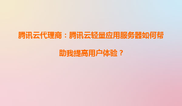 2025-09-16腾讯云代理商:腾讯云轻量应用服务器如何帮助我提高用户体验? 一、腾讯云轻量应用服务器的核心优势 腾讯云轻量应用服务器(Lighthouse)是面向中小企业和个人开发者的...