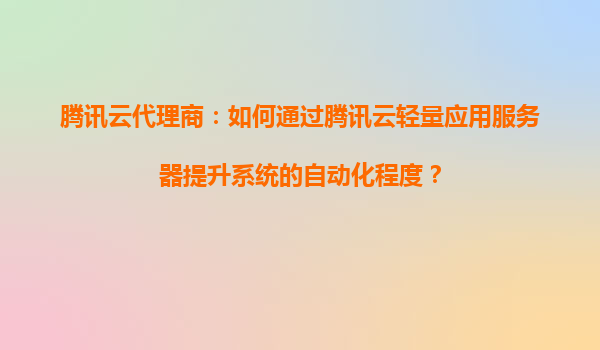 2025-09-06腾讯云代理商:如何通过腾讯云轻量应用服务器提升系统的自动化程度? 在数字化快速发展的今天,企业对于IT基础设施的需求越来越高,尤其是对自动化的需求日益增长。腾讯云轻量应用服务器(Lighthouse)作为一种轻...