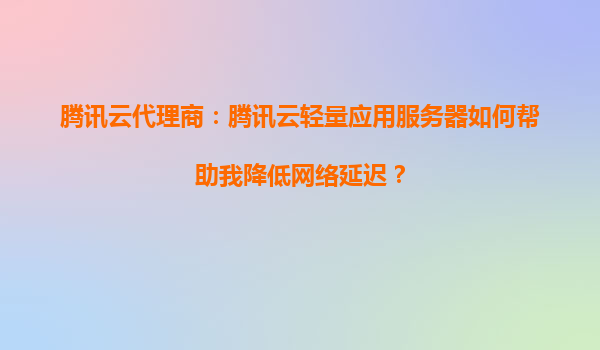 2025-09-06腾讯云轻量应用服务器:降低网络延迟的优质解决方案 在当今数字化时代,网络延迟是影响用户体验和业务效率的关键因素之一。腾讯云轻量应用服务器作为一款高性能、易用性强的云计算产品,通过多种...