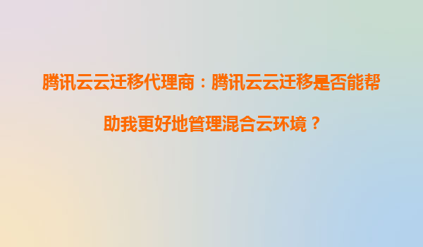 2025-08-31腾讯云云迁移代理商:腾讯云云迁移是否能帮助我更好地管理混合云环境? 一、腾讯云云迁移的核心价值与混合云管理需求 混合云环境因其灵活性和成本效益成为企业数字化转型的主流选择,但跨平台资源管理、数...