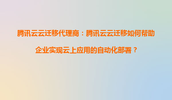 2025-08-31腾讯云云迁移代理商:腾讯云云迁移如何帮助企业实现云上应用的自动化部署? 一、腾讯云云迁移的核心价值与自动化部署优势 腾讯云云迁移服务通过整合云计算、大数据及AI技术,为企业提供从本地IDC到云端的一...