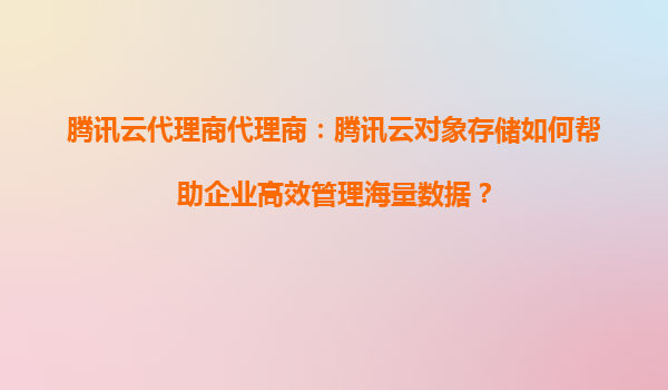 腾讯云代理商:腾讯云对象存储如何帮助企业高效管理海量数据? 在数字化时代,企业面临的数据量呈现爆炸式增长,如何高效、安全地管理和存储海量数据成为企业发展的关键挑战之一。腾讯云对象存储(Clo...