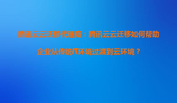 2025-08-30腾讯云云迁移代理商:腾讯云云迁移如何帮助企业从传统IT环境过渡到云环境? 随着数字化转型的加速,越来越多的企业开始将业务从传统IT环境迁移到云环境。腾讯云作为国内领先的云计算服务提供商,凭借其强大的技...