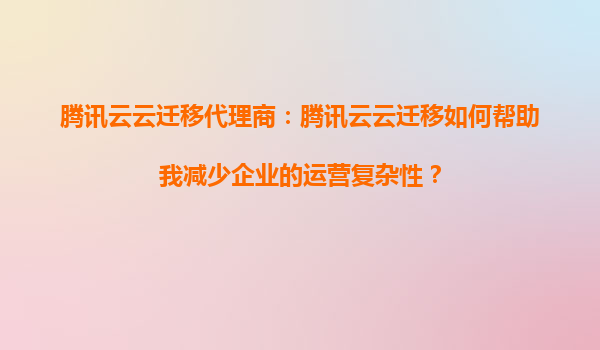 2025-08-30腾讯云云迁移代理商:腾讯云云迁移如何帮助我减少企业的运营复杂性? 在当今数字化时代,企业面临着日益复杂的IT环境和运营挑战。如何高效管理数据、优化资源利用并降低成本,成为企业发展的关键问题。腾讯云云...