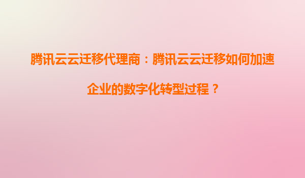 2025-08-31腾讯云云迁移代理商:腾讯云云迁移如何加速企业的数字化转型过程? 在当今数字化时代,企业面临着前所未有的竞争压力和技术变革。为了保持竞争力,越来越多的企业开始拥抱数字化转型。然而,数字化转型并非一蹴...