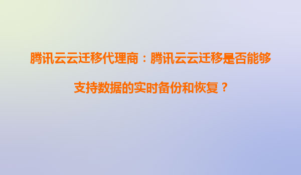 腾讯云云迁移代理商:腾讯云云迁移是否能够支持数据的实时备份和恢复? 引言 随着企业数字化转型的加速,数据迁移和备份成为企业IT架构中的重要环节。腾讯云作为国内领先的云计算服务提供商,其云迁移服务...