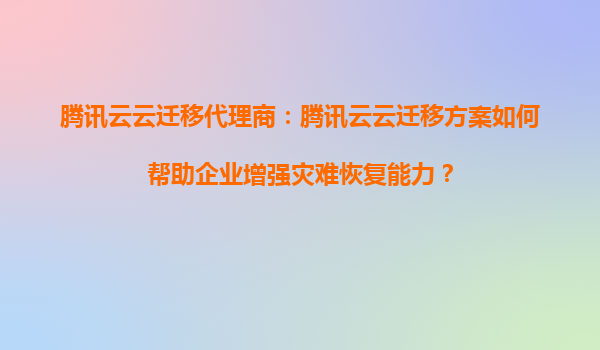 2025-08-30腾讯云云迁移代理商:腾讯云云迁移方案如何帮助企业增强灾难恢复能力? 在当今数字化时代,企业数据的安全性和业务连续性变得尤为重要。灾难恢复(DisasterRecovery,DR)能力是企业确保业务持续运行的关键因...