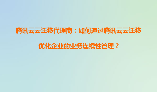 2025-08-30腾讯云云迁移代理商:如何通过腾讯云云迁移优化企业的业务连续性管理? 引言 在数字化转型的浪潮中,企业越来越依赖云计算来提升业务效率和灵活性。然而,如何确保业务连续性(BusinessContinuityManagem...