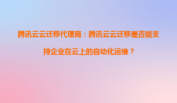 2025-08-30腾讯云云迁移代理商:腾讯云云迁移如何赋能企业自动化运维? 一、企业上云与自动化运维的必然趋势 随着数字化转型加速,企业IT架构向云端迁移已成为主流选择。而云计算的真正价值不仅在...