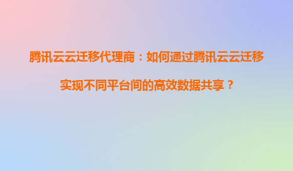 2025-08-30腾讯云云迁移代理商:如何通过腾讯云云迁移实现不同平台间的高效数据共享? 在当今数字化时代,企业数据的高效迁移和共享已成为业务发展的关键需求。腾讯云作为国内领先的云计算服务提供商,其云迁移服务为企...