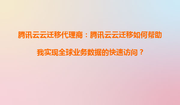 2025-08-30腾讯云云迁移代理商:腾讯云云迁移如何帮助我实现全球业务数据的快速访问? 一、全球化业务的数据访问挑战 随着企业全球化布局加速,跨地域数据访问的延迟、安全性和成本问题日益凸显。...