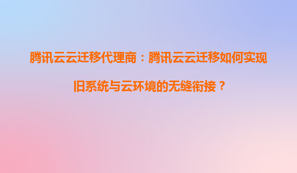 2025-08-30腾讯云云迁移代理商:腾讯云云迁移如何实现旧系统与云环境的无缝衔接? 一、腾讯云云迁移的核心优势 腾讯云作为国内领先的云计算服务商,在云迁移领域具备以下核心优势: 全栈迁移工具链:提...