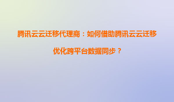 2025-08-29腾讯云云迁移代理商:如何借助腾讯云云迁移优化跨平台数据同步? 一、跨平台数据同步的挑战与需求 在数字化转型浪潮中,企业常面临多平台数据孤岛问题。不同系统间的数据格式差异、网络延迟、安全性要求以...