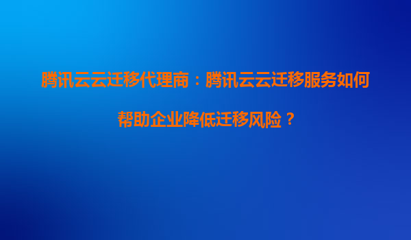 腾讯云云迁移代理商:腾讯云云迁移服务如何帮助企业降低迁移风险? 一、腾讯云云迁移服务的核心优势 腾讯云作为国内领先的云计算服务提供商,其云迁移服务依托强大的技术实力和丰富的行业经验,为企业...