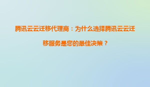 腾讯云云迁移代理商:为什么选择腾讯云云迁移服务是您的最佳决策? 在数字化转型的浪潮中,企业上云已成为提升业务敏捷性和竞争力的关键一步。然而,云迁移过程复杂且充满挑战,如何选择可靠的云服务提供商至关...