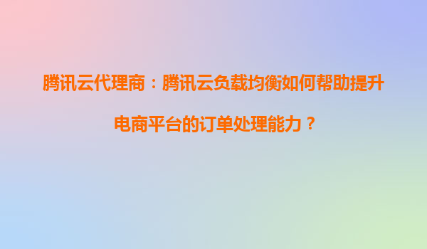 腾讯云代理商:腾讯云负载均衡如何帮助提升电商平台的订单处理能力? 引言 在电商行业,订单处理能力直接影响用户体验和业务增长。面对大促活动或流量高峰,如...