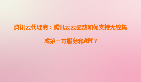 2025-08-24腾讯云代理商:腾讯云云函数如何支持无缝集成第三方服务和API? 一、腾讯云云函数的核心优势 腾讯云云函数(ServerlessCloudFunction,SCF)是腾讯云提供的无服务器计算服务,其核心优势在于免运维、弹性...