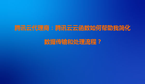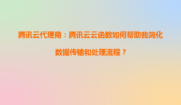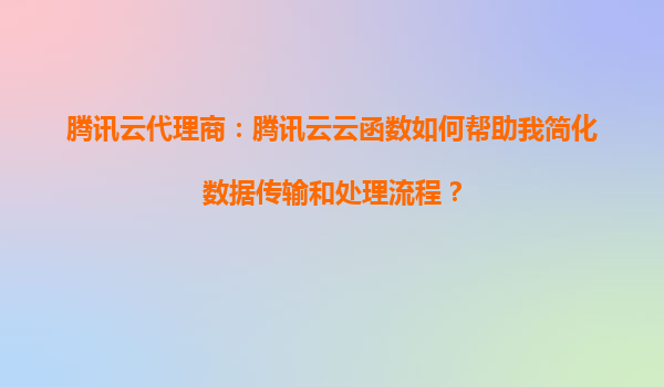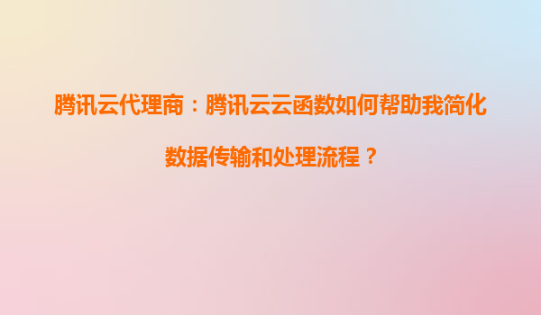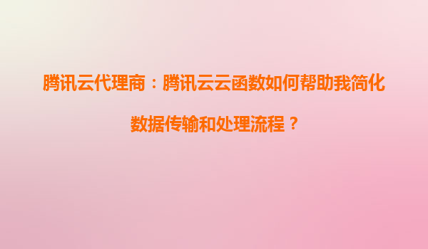 2025-08-24腾讯云代理商:腾讯云云函数如何帮助我简化数据传输和处理流程? 引言 在当今数字化时代,企业面临着海量数据的传输和处理需求。传统的数据处理方式往往需要复杂的架构和大量的人力...