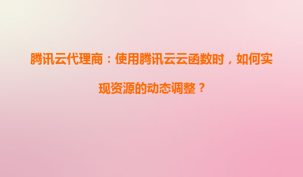 腾讯云代理商:使用腾讯云云函数时,如何实现资源的动态调整? 一、云函数与动态资源调整的核心价值 腾讯云云函数(SCF)作为无服务器计算服务,其核心优势在于自动扩缩容能力。通过事件驱动模式,云函数可...